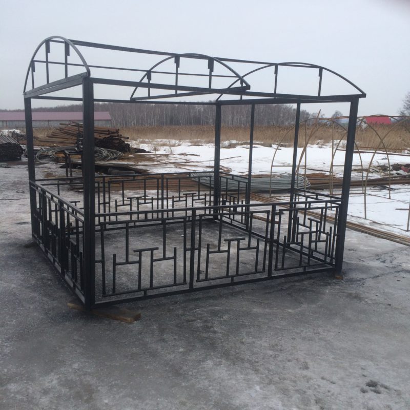 КАРКАС СДЕЛАН ИЗ ПРОФИЛЬНОЙ ТРУБЫ 30*30, ДУГИ ИЗ ПРОФИЛЬНОЙ ТРУБЫ 40*20 И 20*20, РИСУНОК ИЗ ПРОФИЛЬНОЙ ТРУБЫ 15*15.