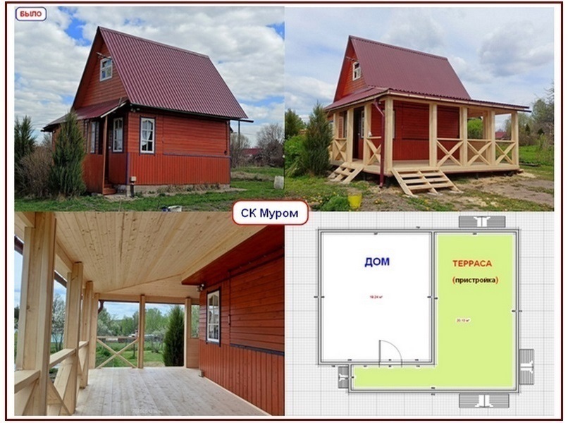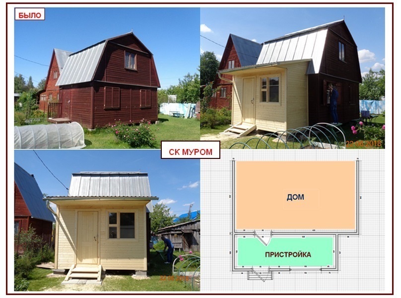 За свою 16-илетнюю деятельность, компанией «СК Муром» смонтировано около 100 пристроек различных по размерам и по категории сложности. Типового строительства в сфере монтажа пристроек не бывает и поэтому каждая такая работа – это в своём роде эксклюзив. Перед началом работ наши специалисты выезжают на место предполагаемого строительства для проведения необходимых замеров и определения целостности и надёжности несущих конструкций строения, к которому планируется монтаж пристройки. К работам этого направления допускаются плотники с многолетним опытом в этой области дачного строительства. Договор. Гарантия качества. Без посредников. Варианты наших пристроек можно посмотреть на сайте компании, который легко найти во всех поисковых системах, введя в поиск: СК Муром